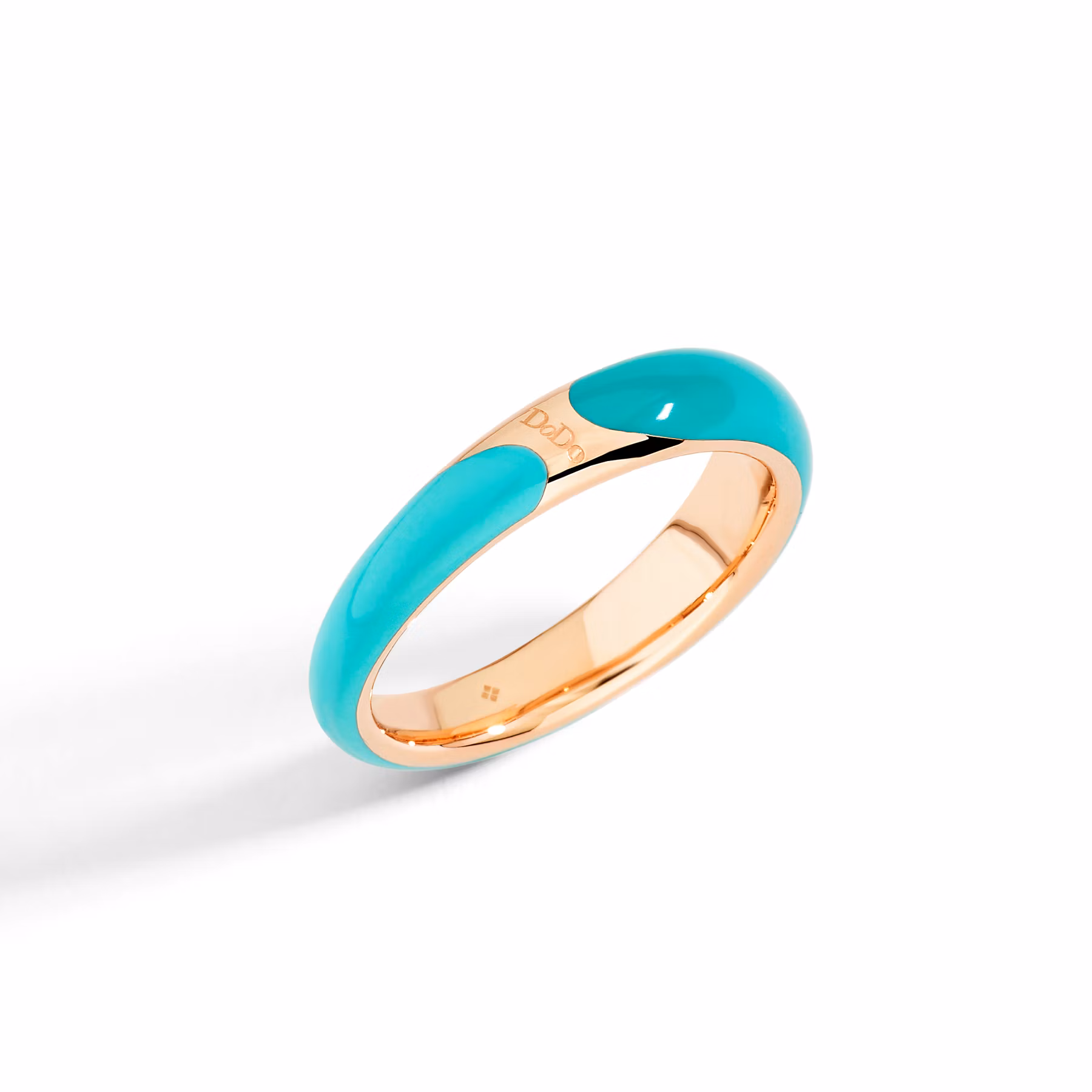 Anello rondelle in argento dorato oro rosa 18K e smalto bi-color turchese.