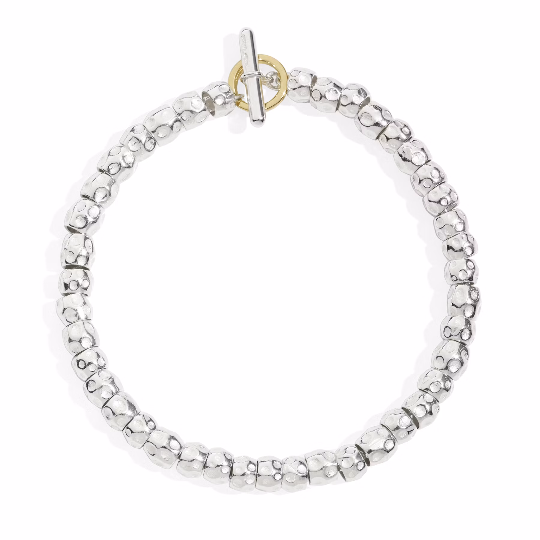Bracciale granelli in argento 925, catena in argento 925 con Anello brisè in oro giallo 18K. Ago in argento 925 incluso.
