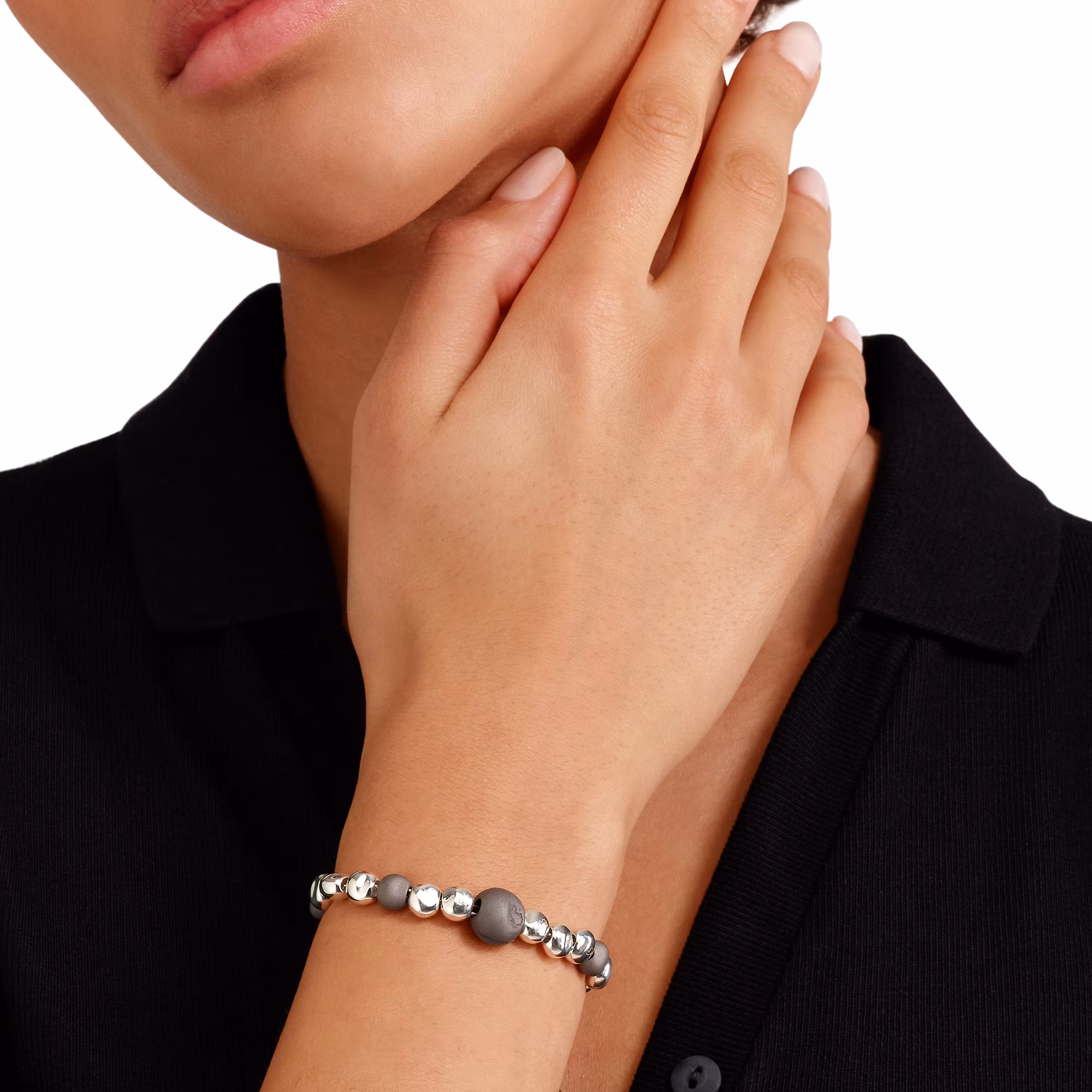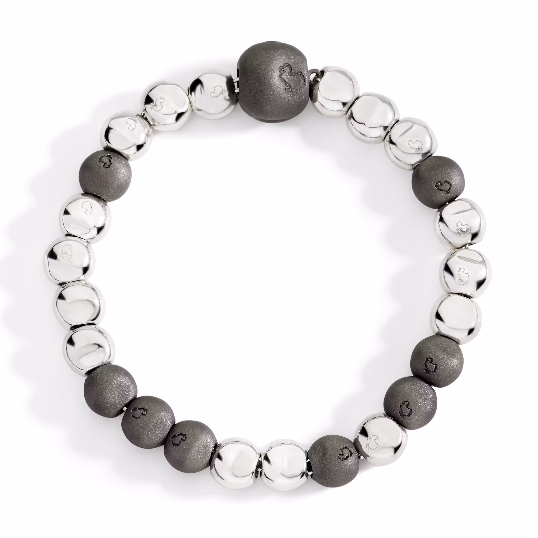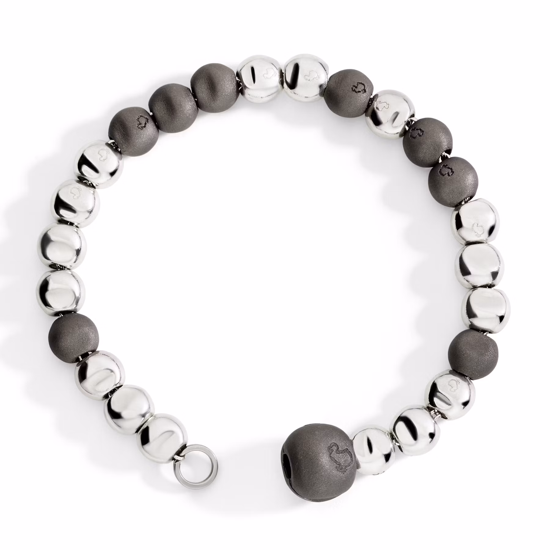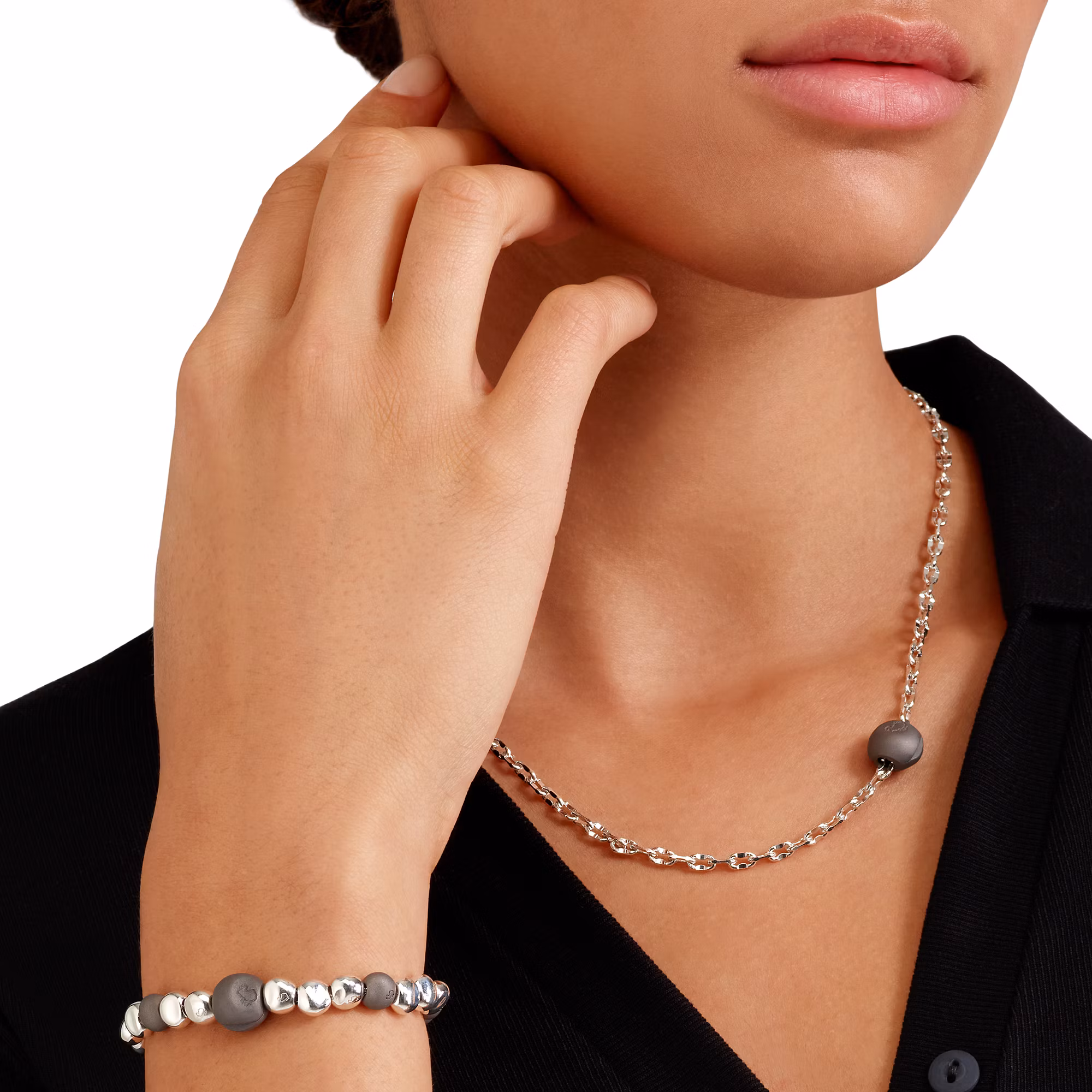 DoDo torna alle sue origini e reimmagina il bracciale Pepita con un nuovo equilibrio tra argento lucido e titanio, in un gioco di contrasti decisi. La nuova chiusura “shell” sostituisce il classico t-bar, donando al design un tocco audace e genderless. Stile essenziale e carattere distintivo: il bracciale Pepita propone una dichiarazione contemporanea di identità.