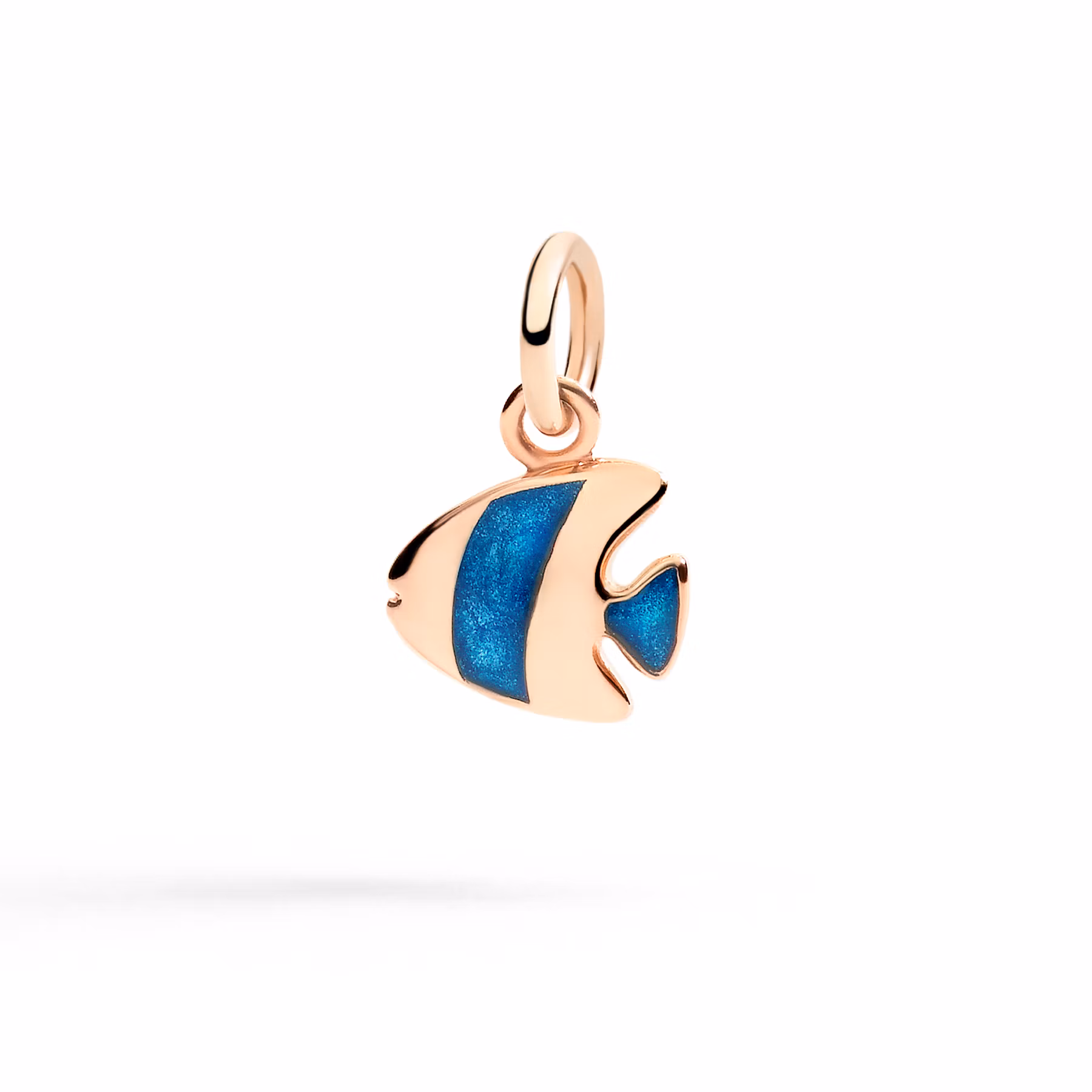 Charm Pesce Angelo in oro rosa 9K e smalto blu effetto madreperla. Cordino nero incluso.