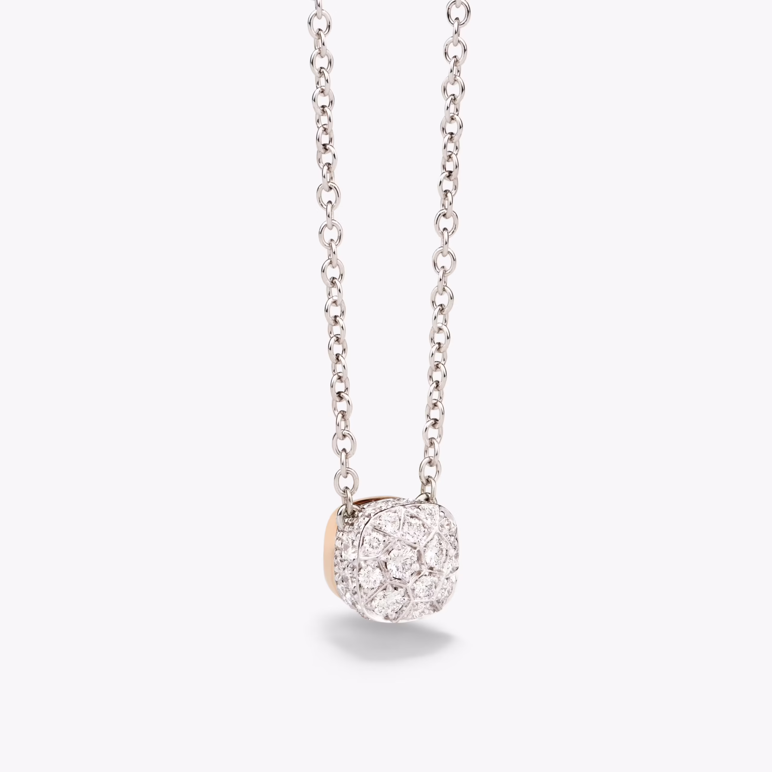 Collana con pendente in oro bianco e rosa 18K con 36 diamanti bianchi (≈0.8 ct) su oro bianco rodiato 18K.