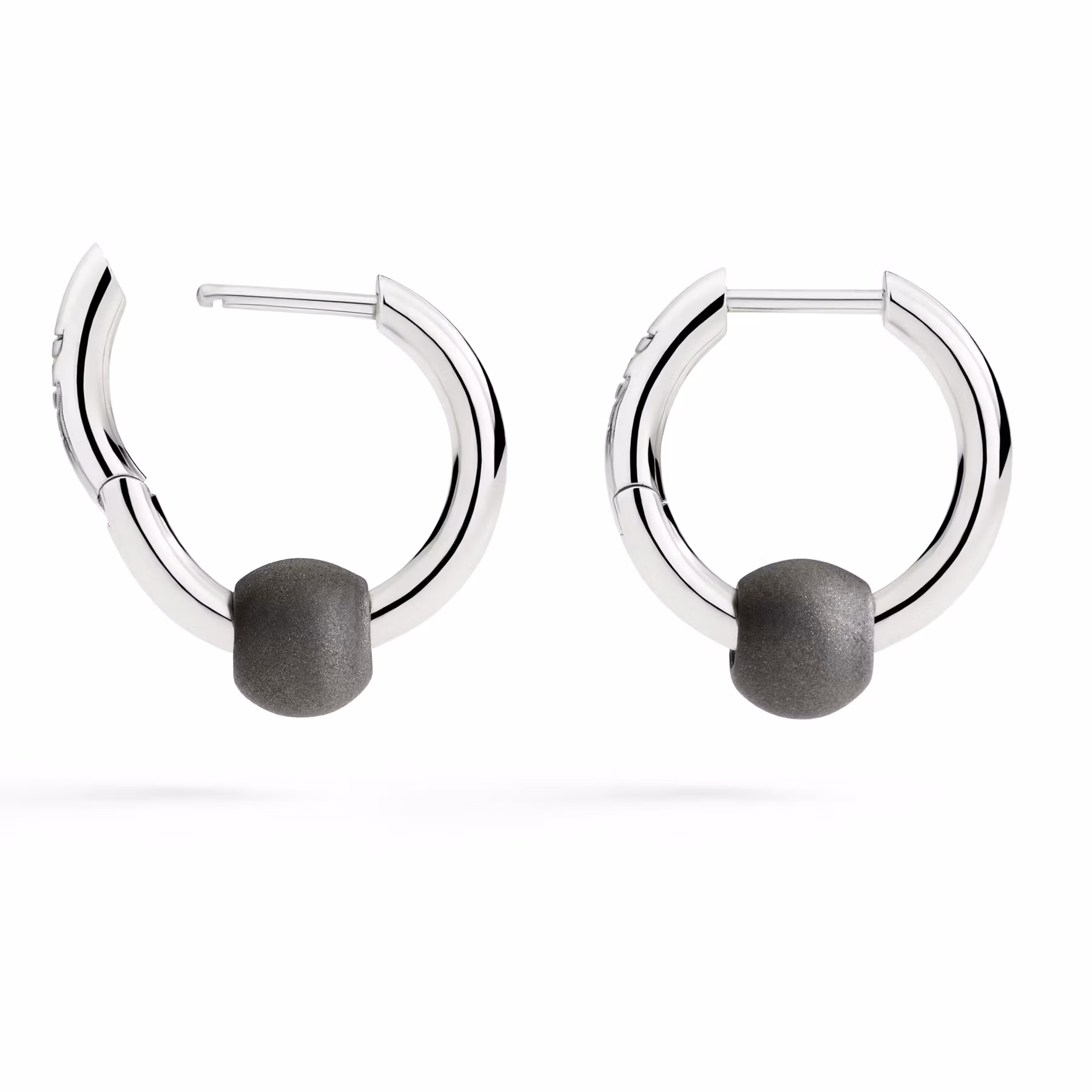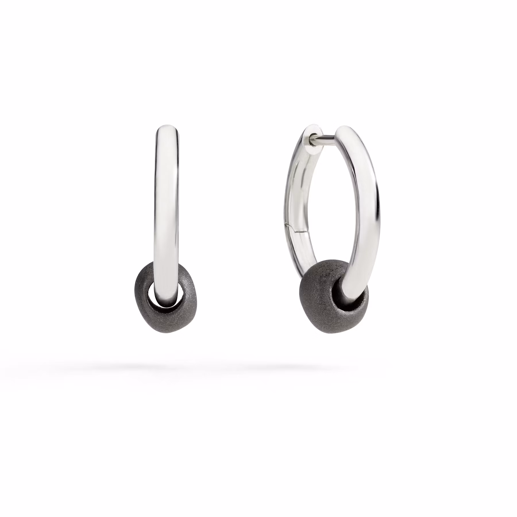 Linee essenziali e design versatile per i nuovi orecchini Pepita che trovano un’inedita armonia tra argento e titanio. Il cerchio Pepita si rinnova con un tocco moderno e leggero e si fa complice silenzioso dell’espressione personale.