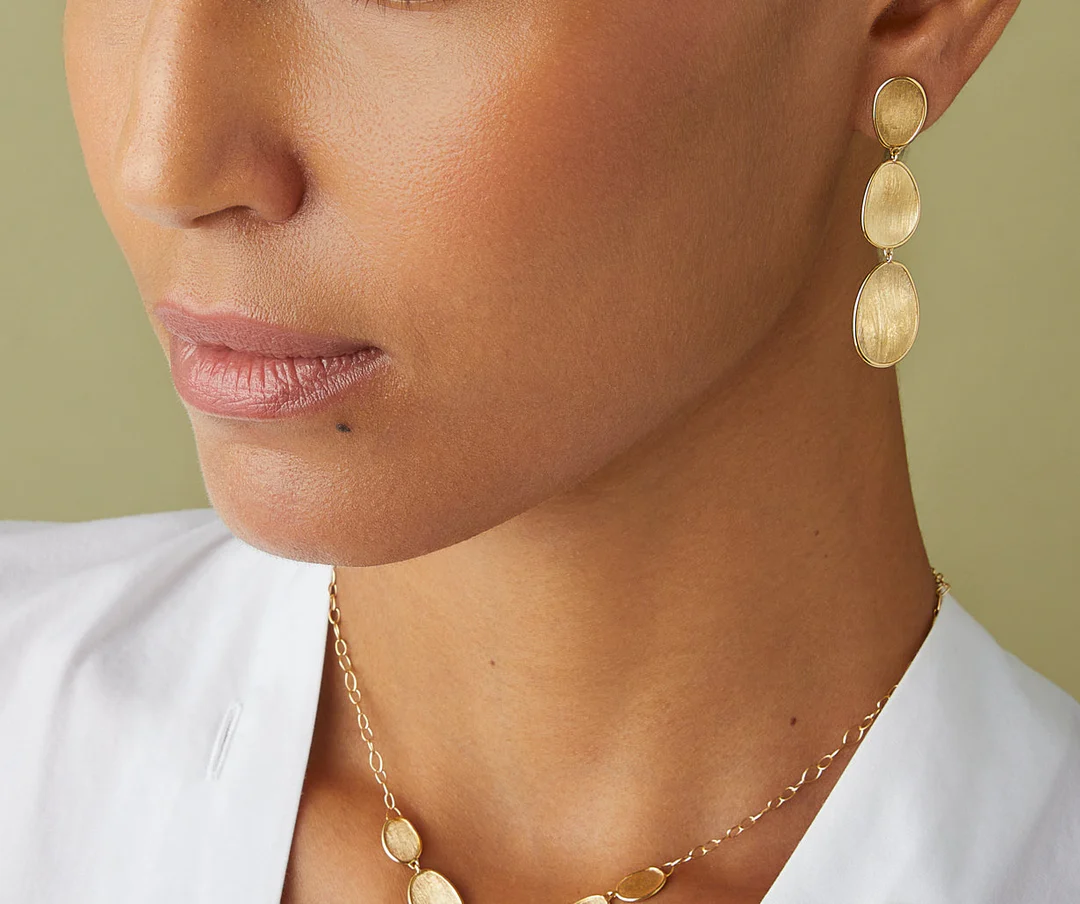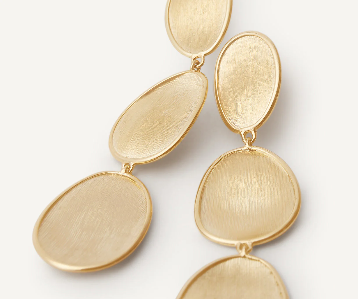 Romantici e femminili, questi orecchini tripli sono il perfetto connubio tra versatilità ed eleganza sobria. Le foglie in oro giallo 18 carati sono finemente incise a mano secondo un’antica tecnica fiorentina. Perfetti per completare il look e aggiungere un tocco di luce a qualsiasi outfit.